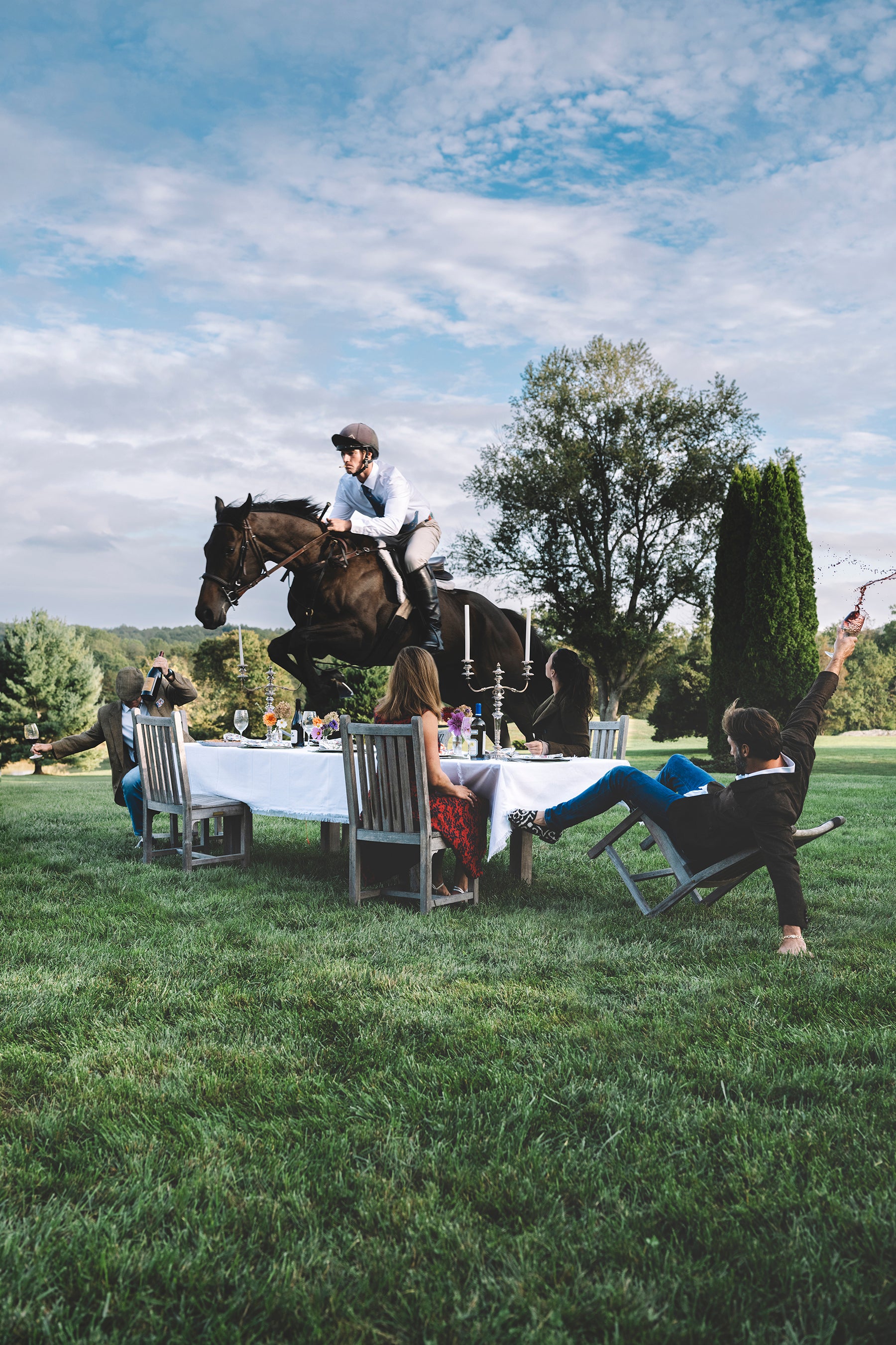 Over the last 10 years, Mele has become known for spinning tales of surreal characters in dreamlike domestic spaces. Documenting a lifestyle at once familiar yet fantastic, his imagery feels like a fanciful peek into life in the country's most luxurious resort towns. As viewers, we are offered a glimpse into a world, sometimes real and sometimes imagined, that is normally inaccessible to the public eye.